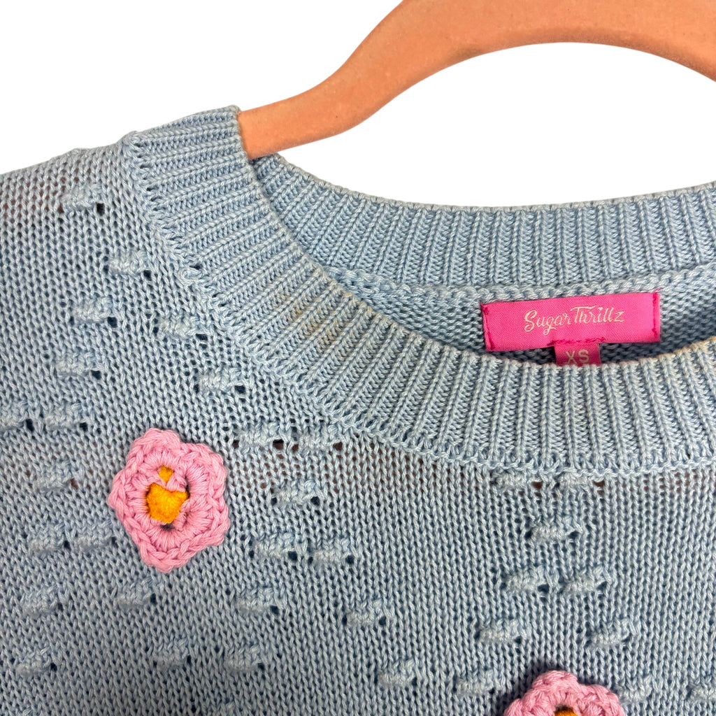 Sugar Thrillz Pale Blue Pink Flower Knit Cropped Sweater - Size XS (See Notes, Sold Out Online))