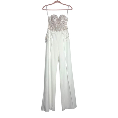 Azazie Bella Diamond White/Champagne Wedding Dress/Jumpsuit NWT- Size 2