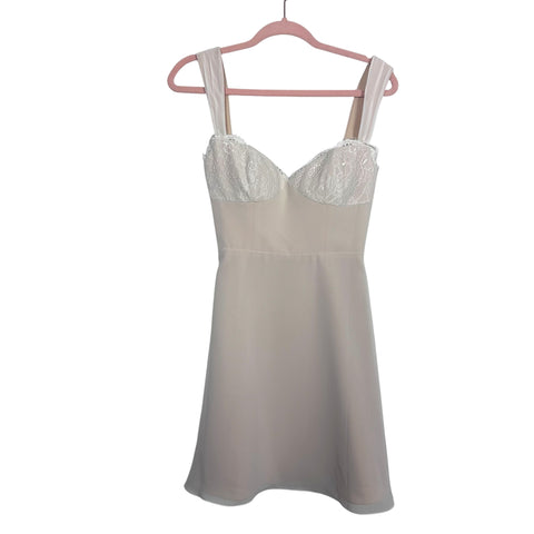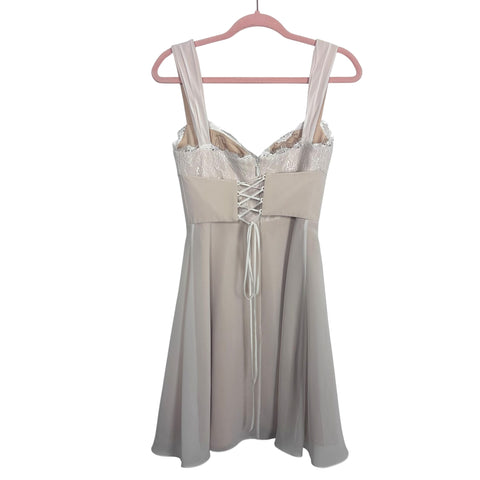 Azazie Tan with Cream Lace Bodice and Back Lace Up Dress- Size 2
