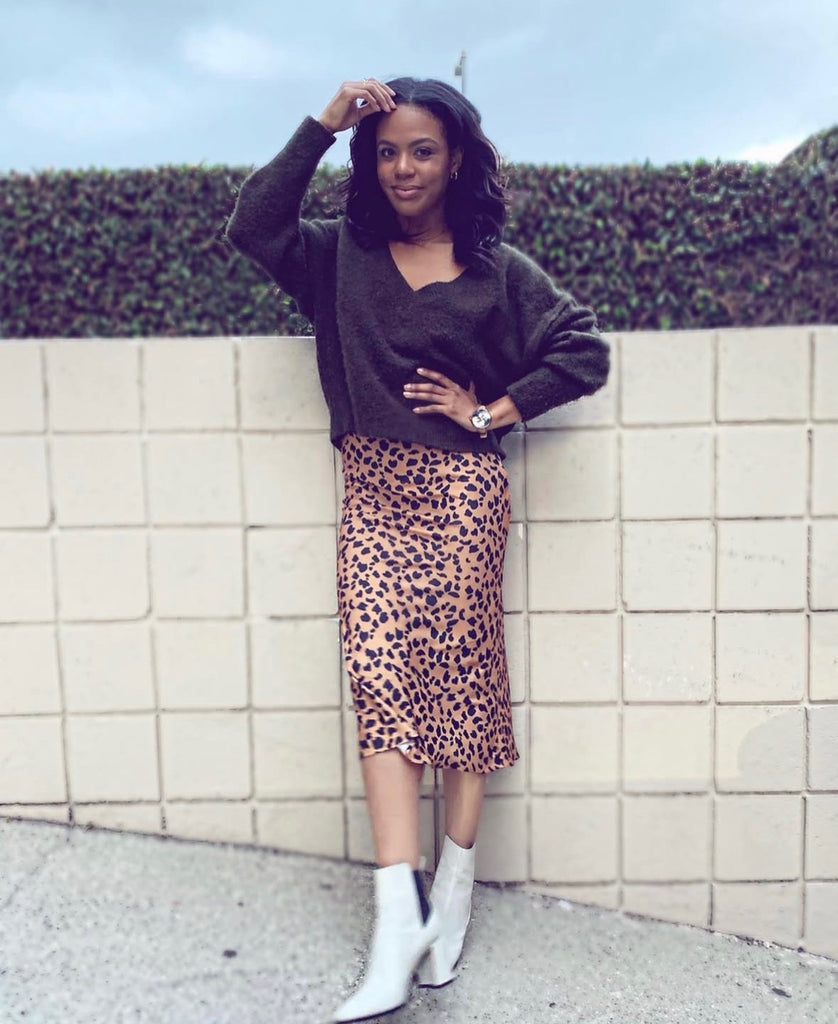 Urban Outfitters Animal Print Satin Elastic Waist Skirt- Size S
