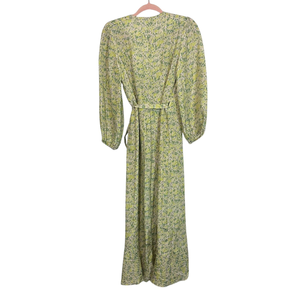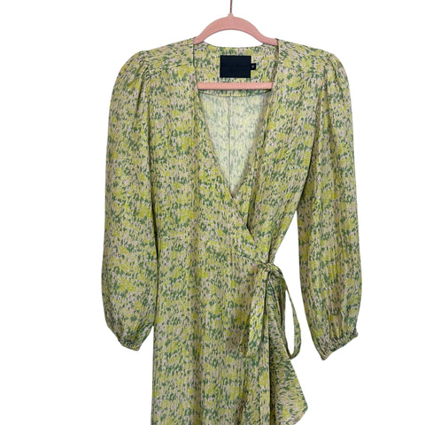 No. 6 Store Pink/Greens Printed Silk Blend V-Neck Wrap Dress- Size 0