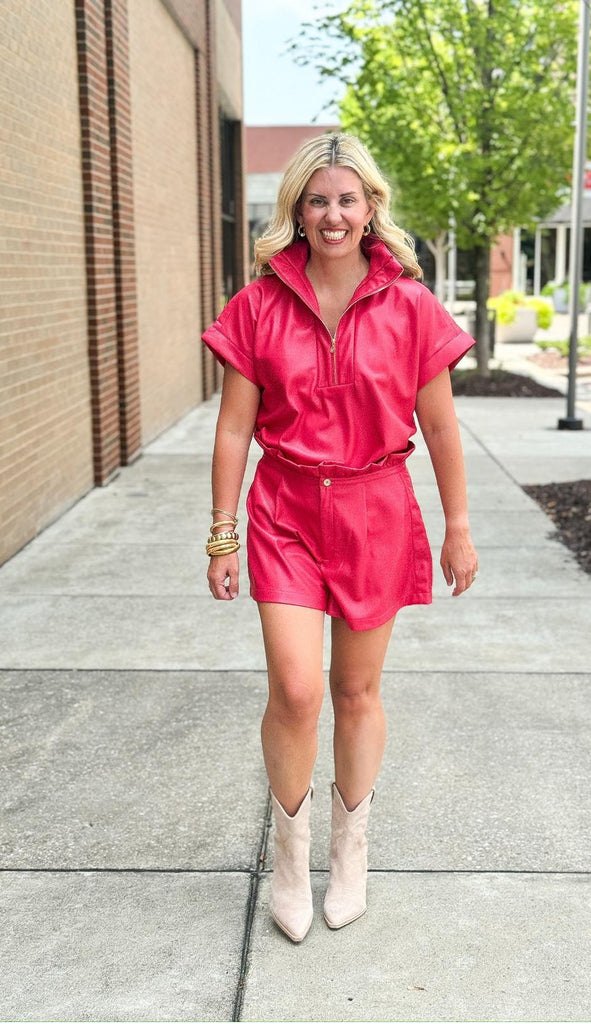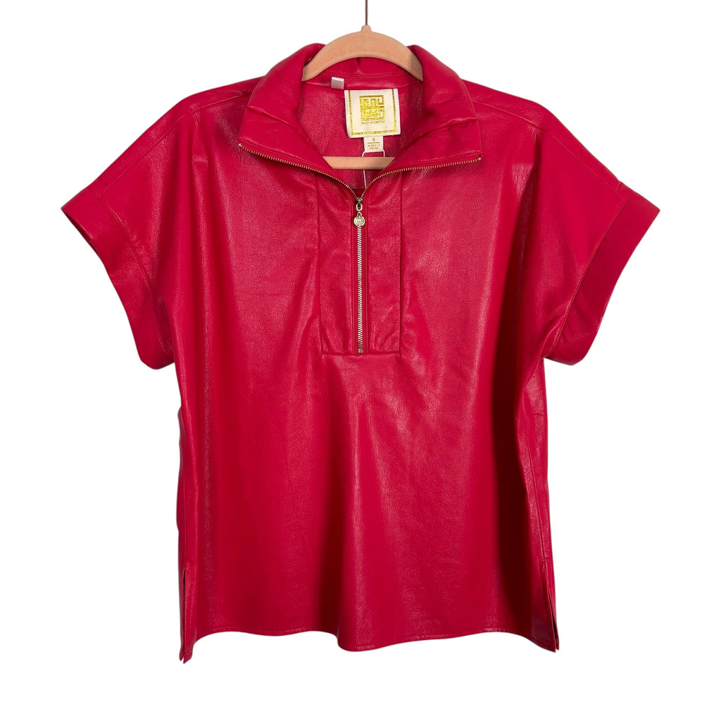 Emily Mccarthy Rose Red Faux Leather Poppy Pullover Top NWT - Size S