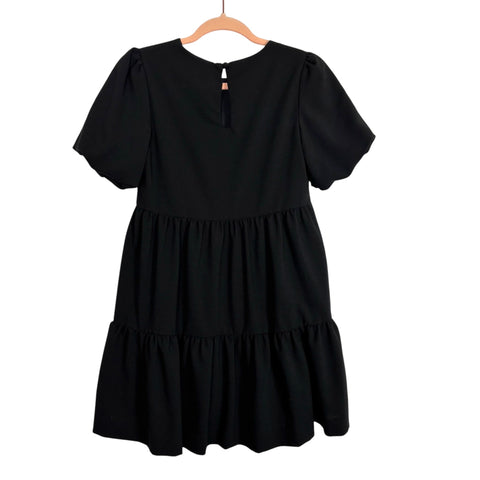 Gabby Black Puff Sleeves Tiered Dress- Size 16 Girls