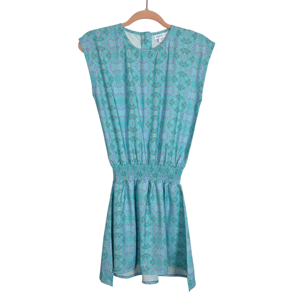 Pleat Turquoise Printed Smocked Waist Dress- Size 14 Girls