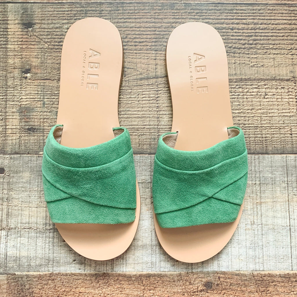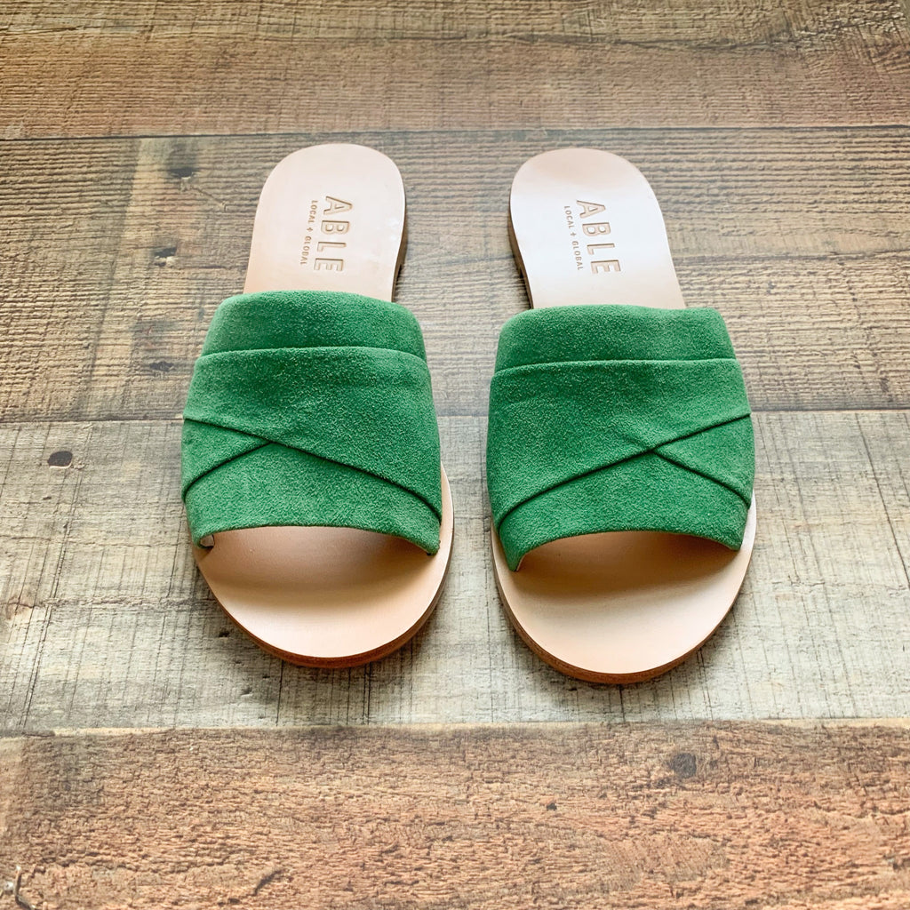 ABLE Green Suede Slip On Sandals NWOT- Size 6