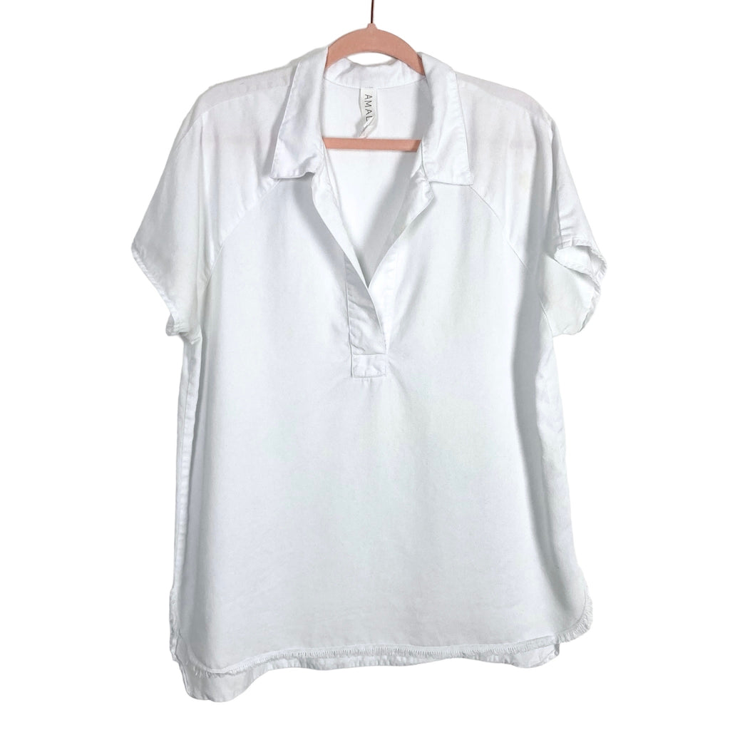 Amadi White V-Neck with Raw Hem Collared Top- Size M (see notes)