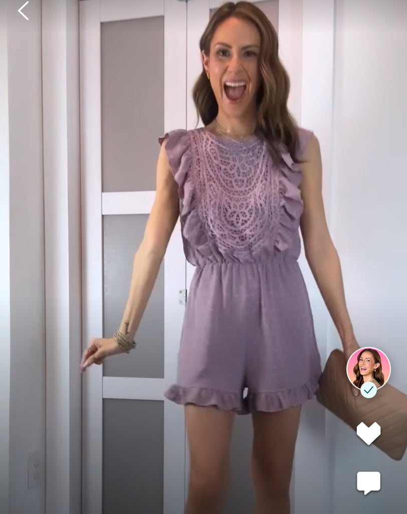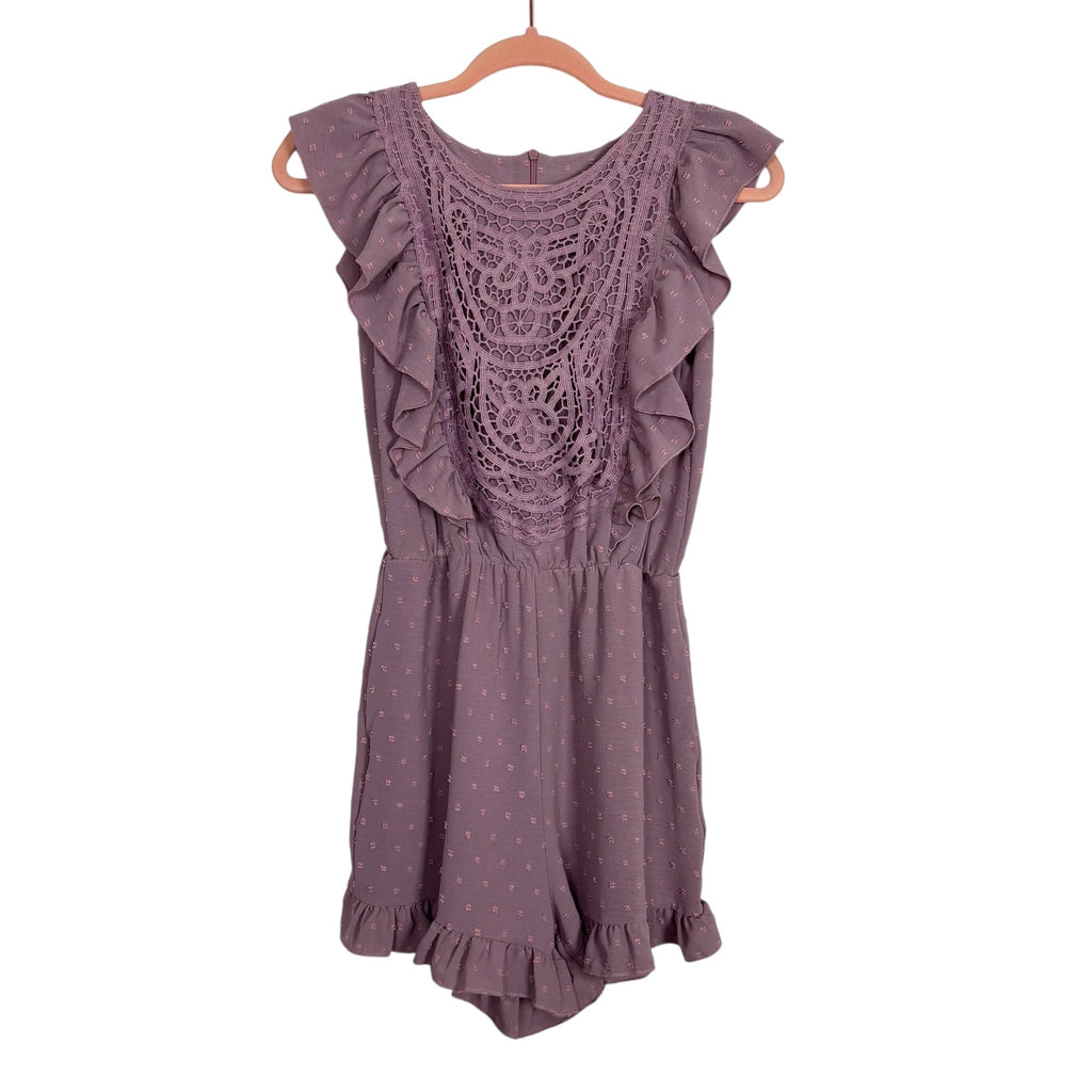 Angashion Purple Swiss Dot Crochet Romper NWT- Size XS (sold out online)
