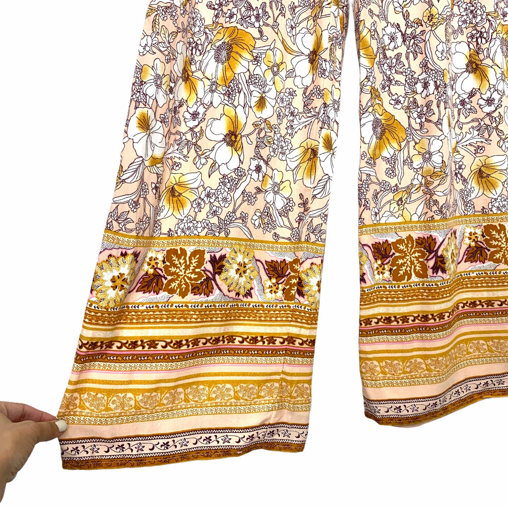 Band of Gypsies Blush Gold Floral Drawstring Waist Pants NWT- Size L (Inseam 31”)