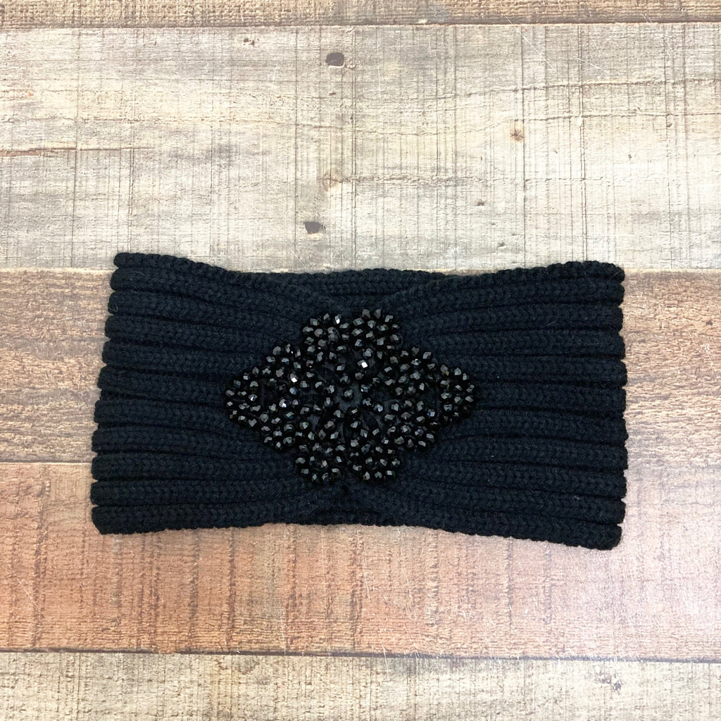 Betsey Johnson Black Ribbed Knit with Black Beads Ear Warmer Headband
