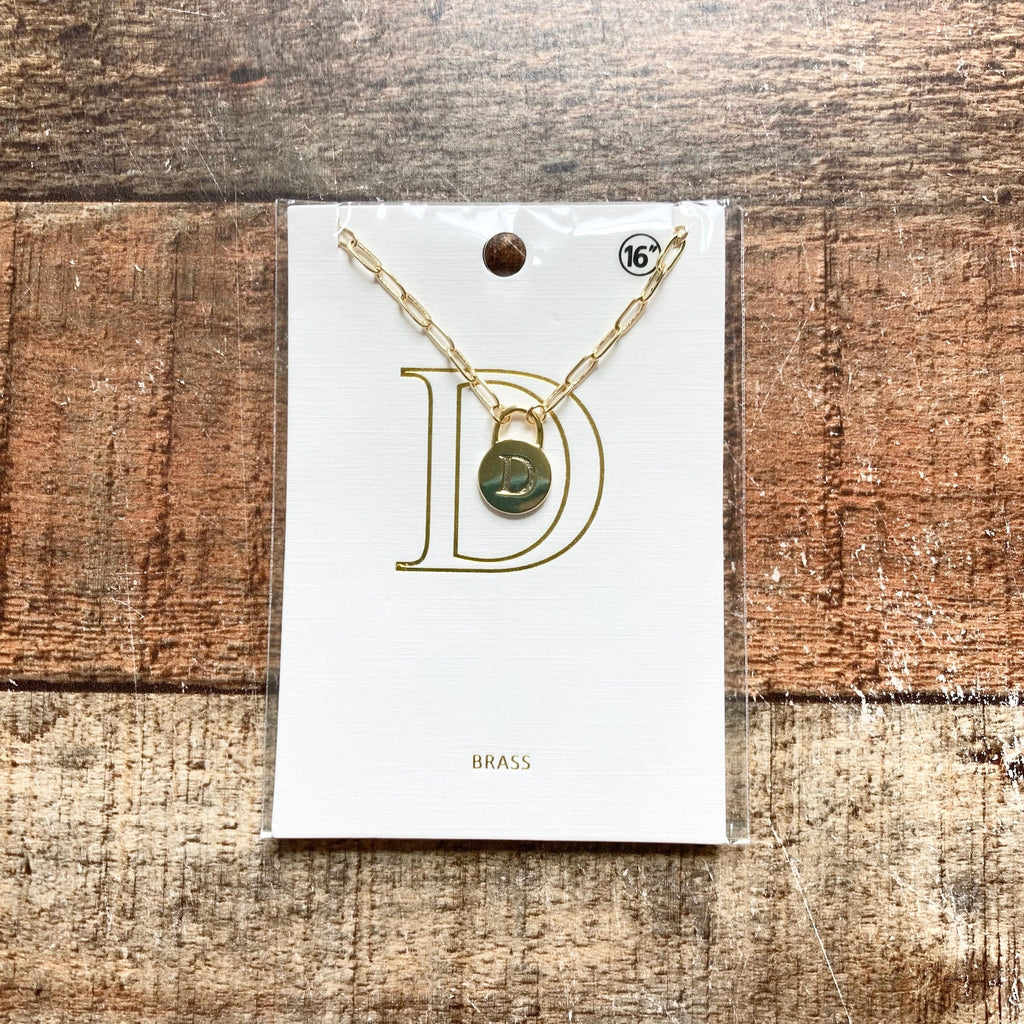 Brass 16" Letter "D" Initial Necklace (New in Bag)