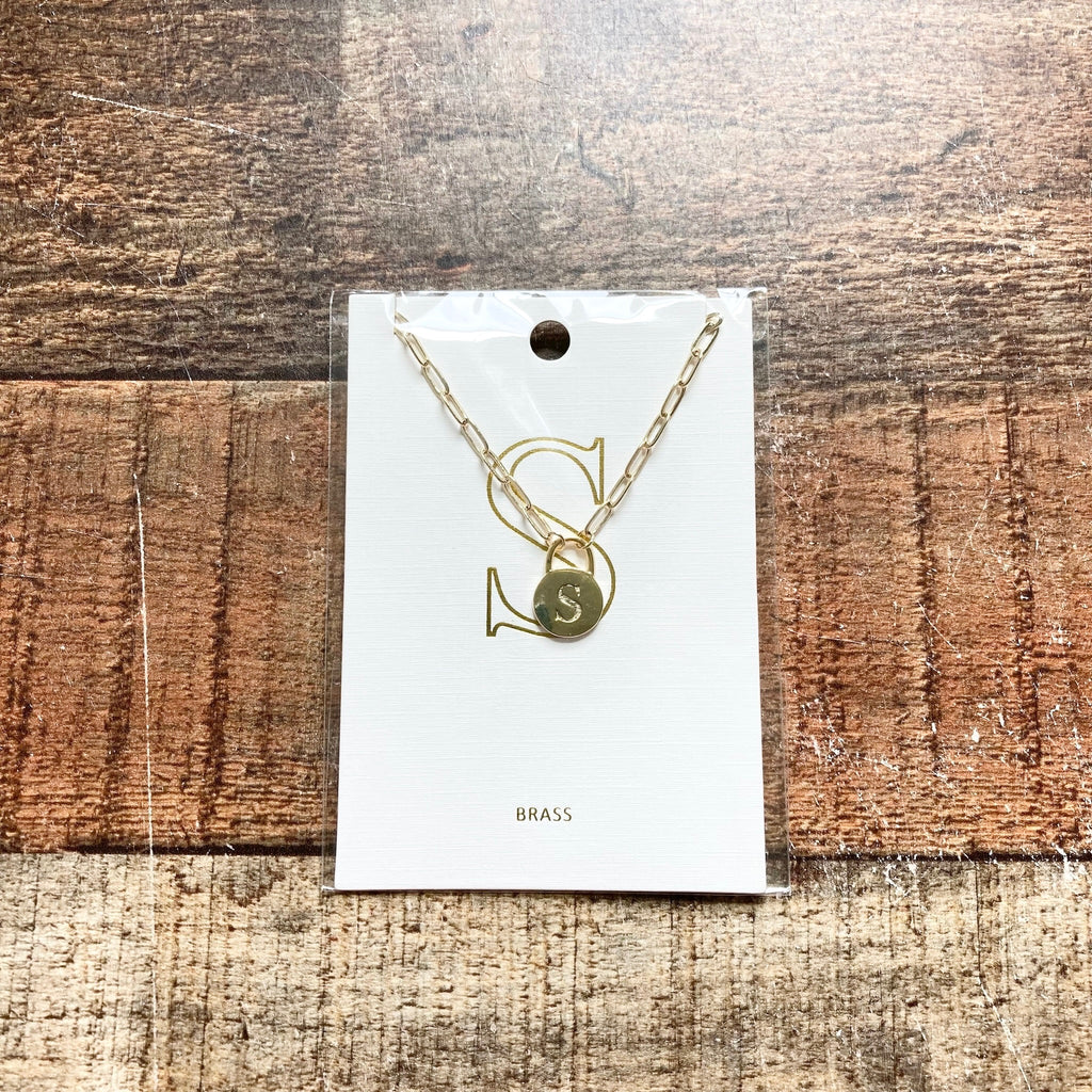 Brass 16" Letter "S" Initial Necklace (New in Bag)