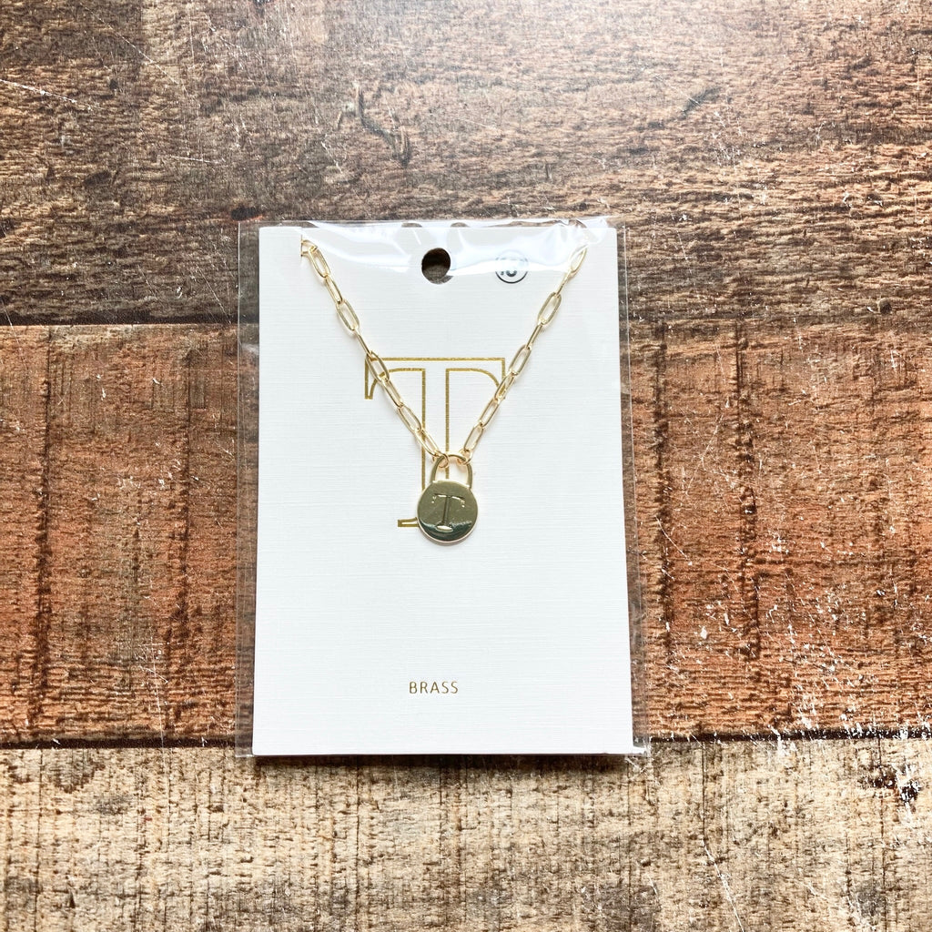 Brass 16" Letter "T" Initial Necklace (New in Bag)