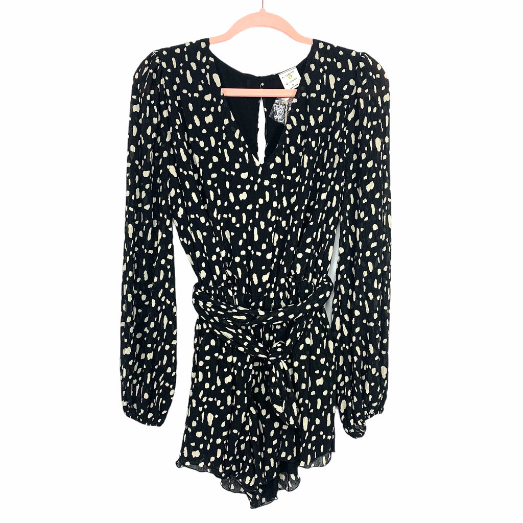 By Together Black and Cream Print Belted Romper NWT- Size S