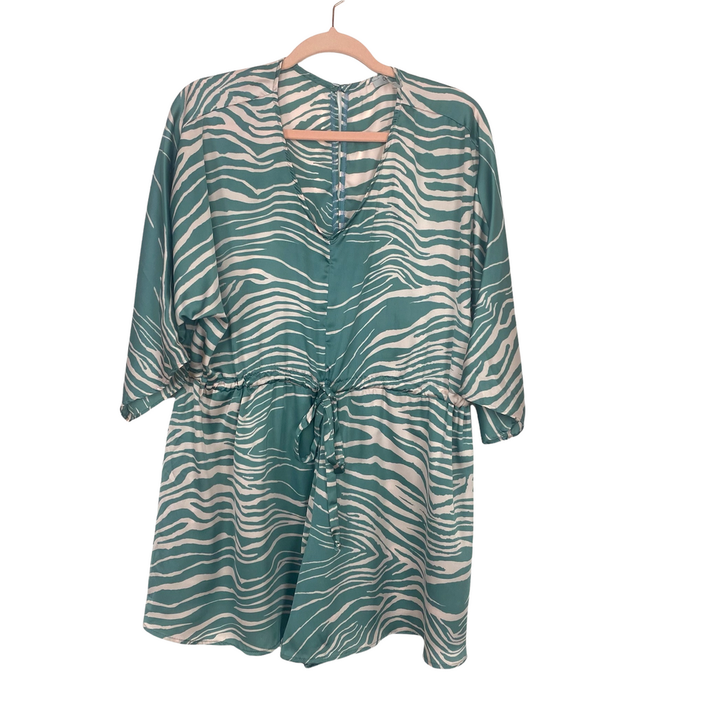 Ces Femme Animal Print Satin Drawstring Romper- Size S