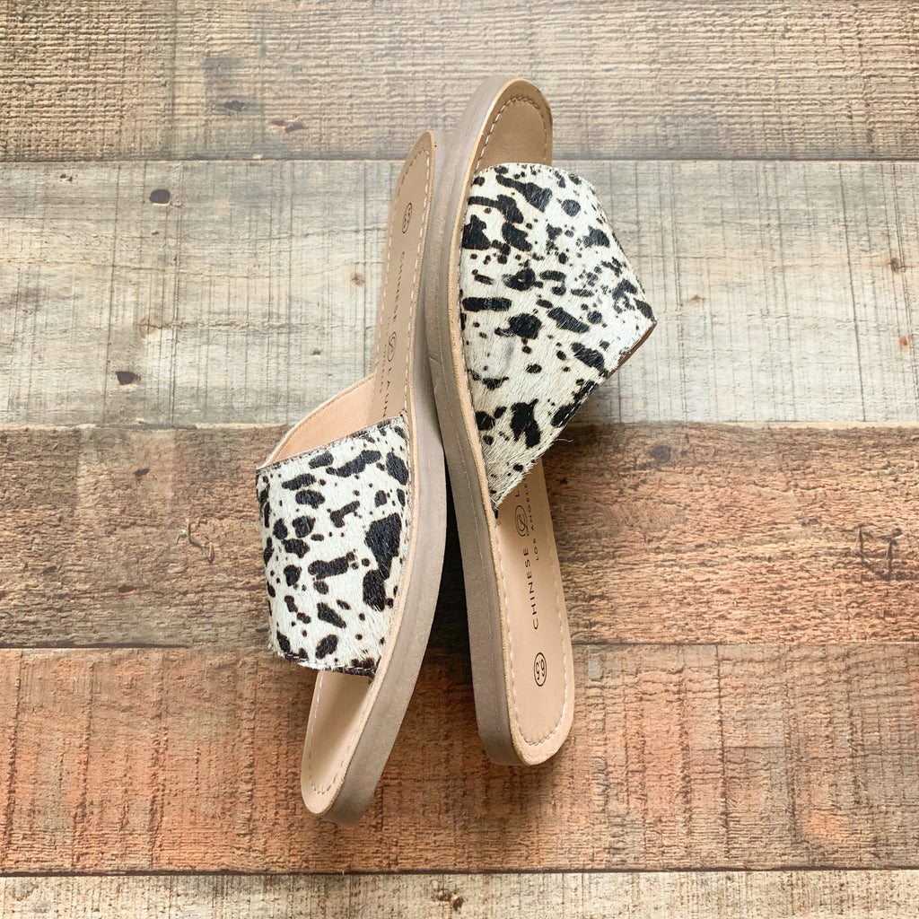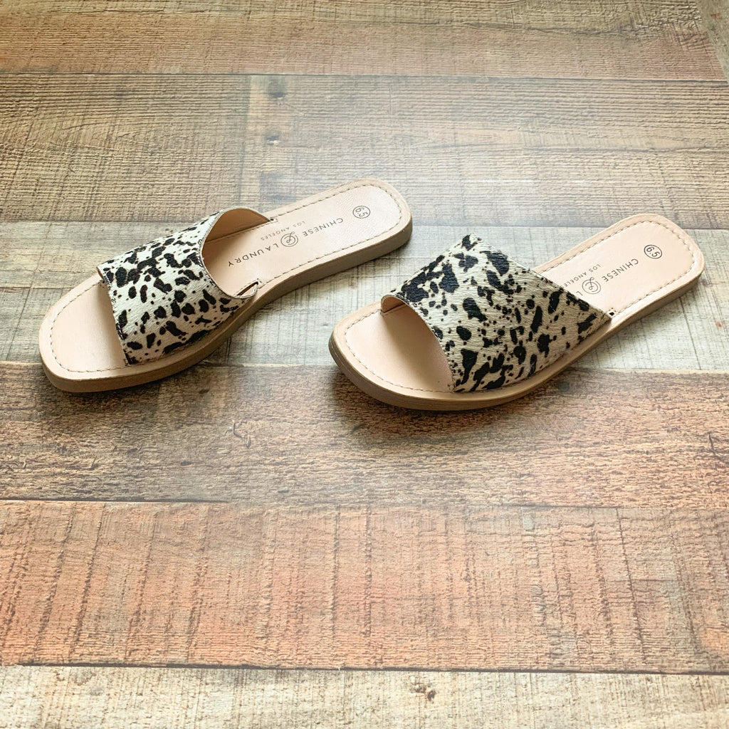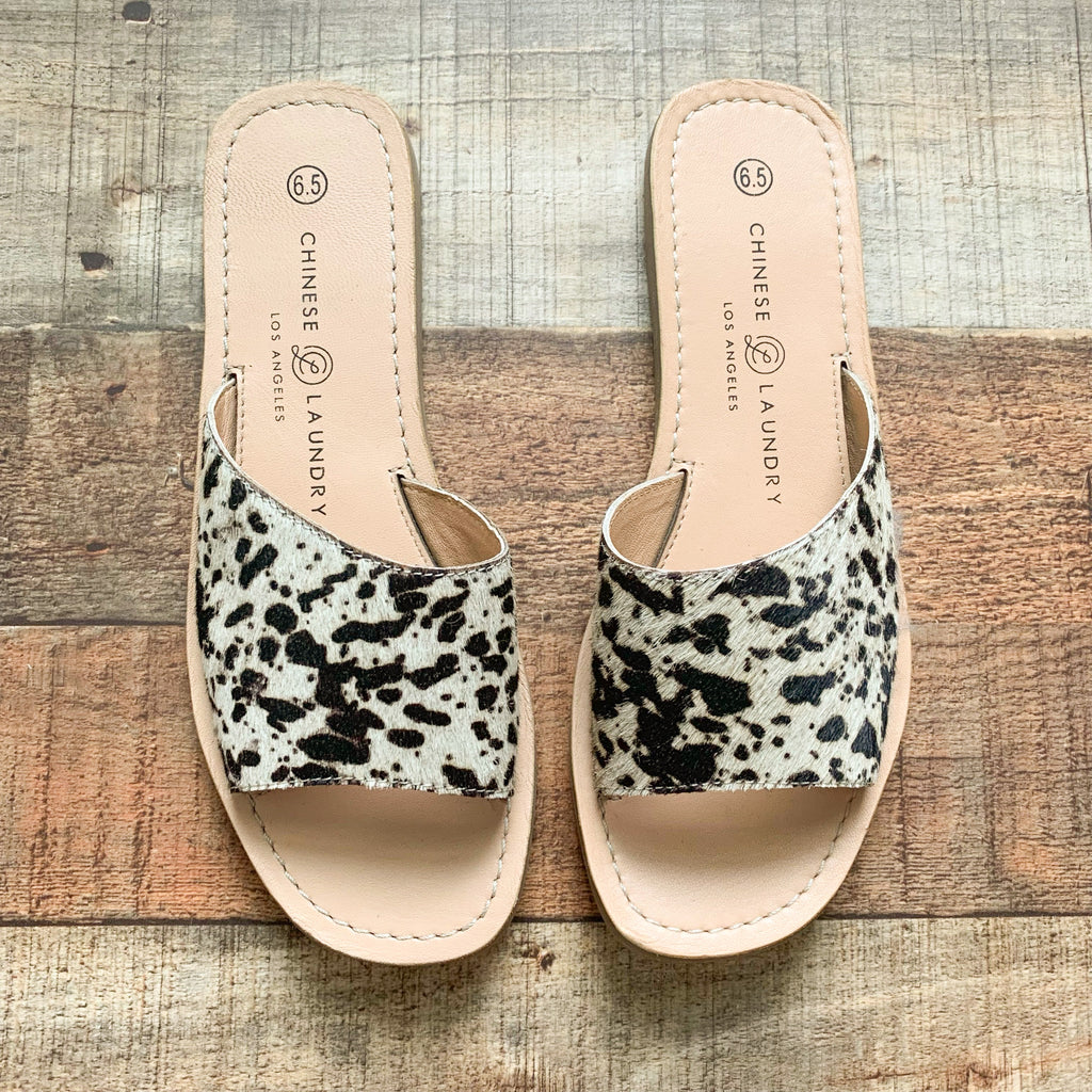 Chinese Laundry Real Fur Printed Cow Hair Slip On Sandals NWOT- Size 6.5
