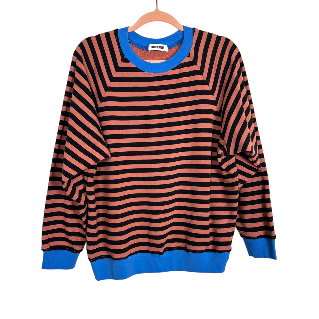 Daydreamer Black/Brown Stripes with Blue Trim Sweatshirt- Size M