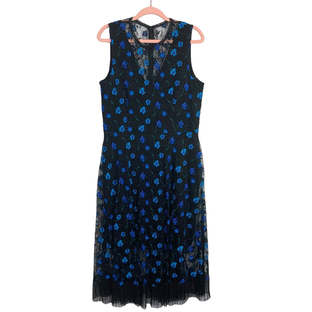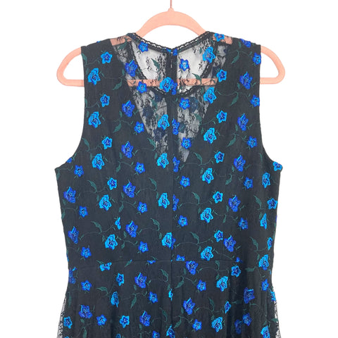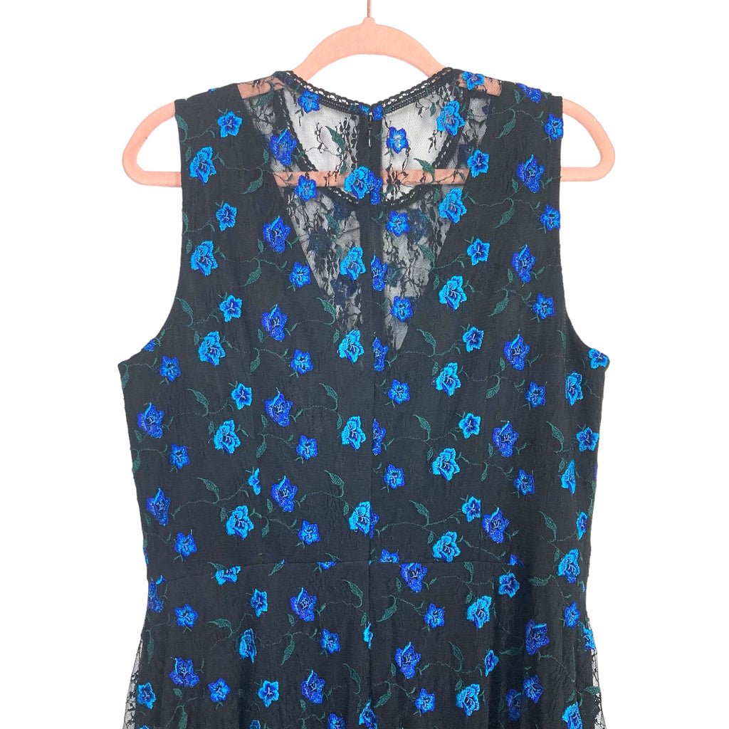 Dress the Population Black with Blue and Green Embroidered Floral Lace Overlay Dress- Size XL