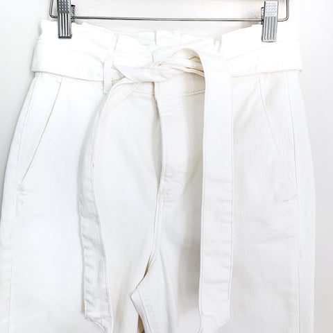 Express White Denim Paperbag Waist Cropped Legging Super High Rise- Size 2 (Inseam 24.5")