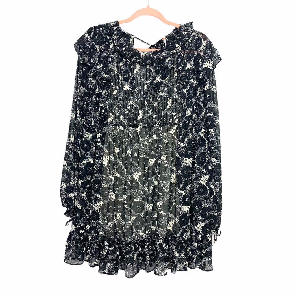 Free People Black/White Sheer Tie Back Overlay With Detached Dress NWT- Size XS