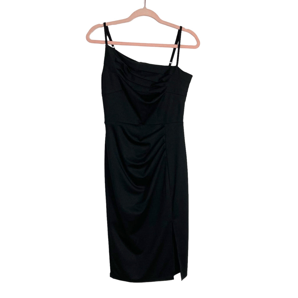 Grace Karin Black One Shoulder Ruched Slit Dress- Size S
