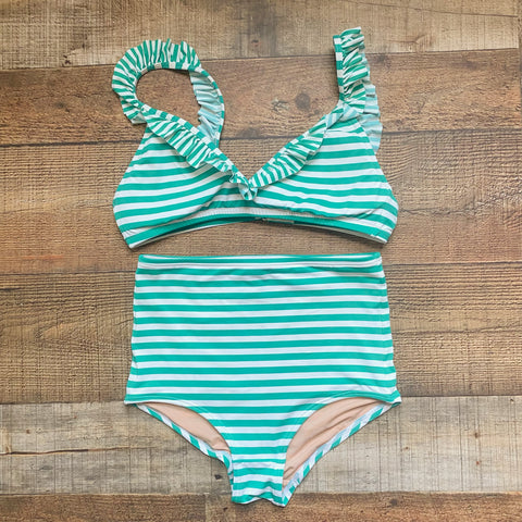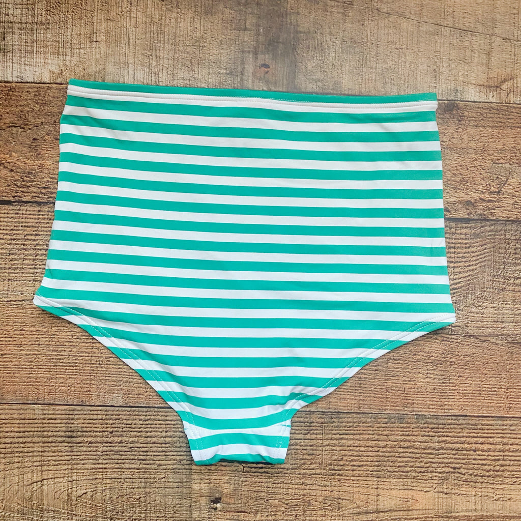 J Crew Green/White Striped High Waisted Bikini Bottoms- Size XS (BOTTOMS ONLY)