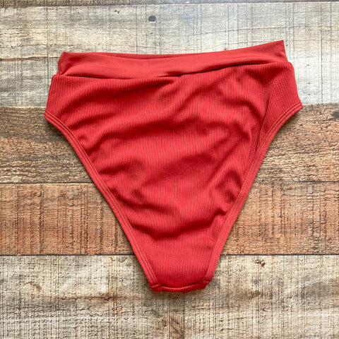 L Space Brick Red Ribbed Bikini Bottoms- Size S