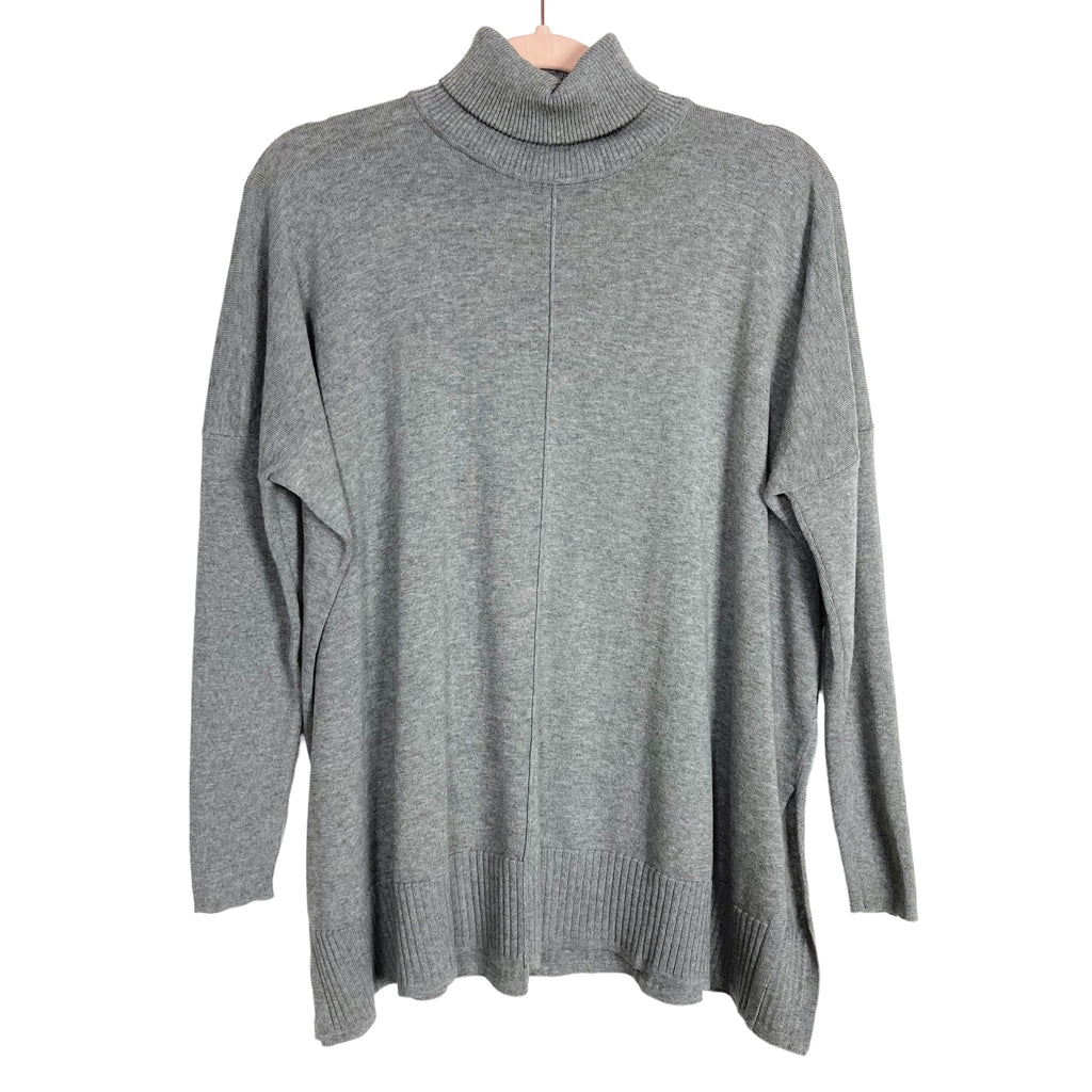 Lilla P Gray Silk Blend with Ribbed Neck and Hem Turtleneck Sweater- Size M/L
