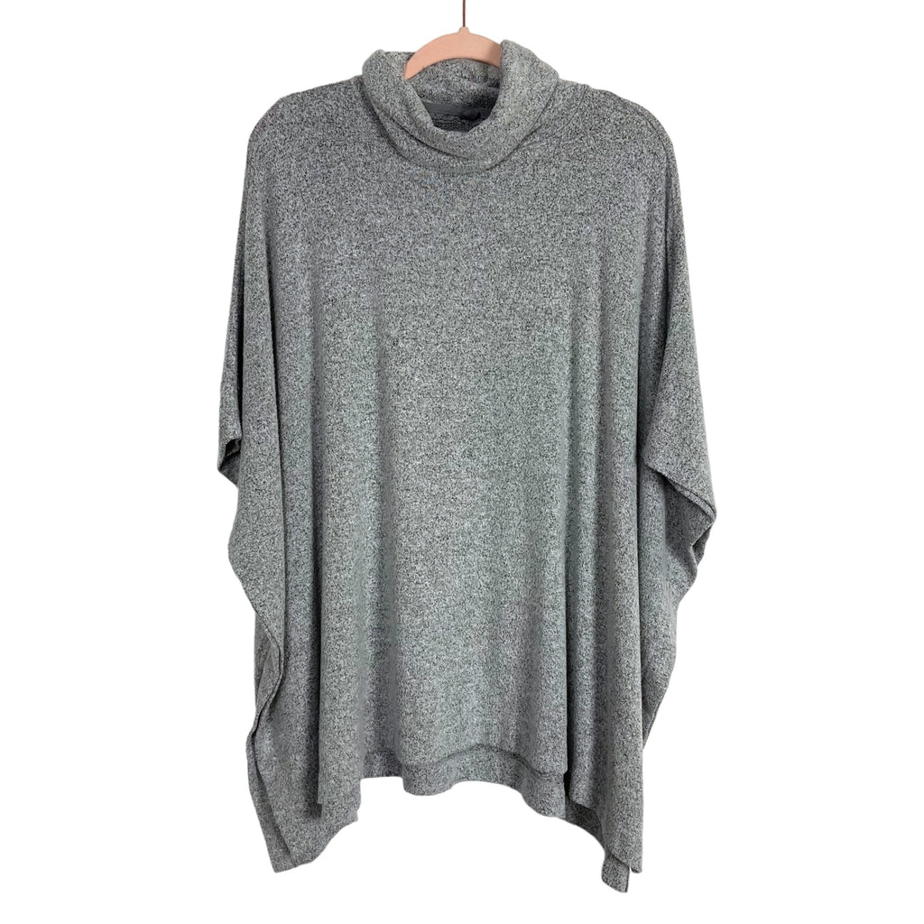 Lou & Grey for Loft Black/Gray Space Dye Turtleneck Poncho Style Sweater- Size L/XL