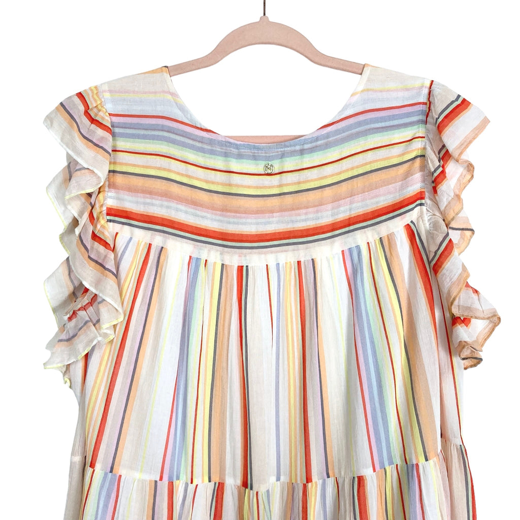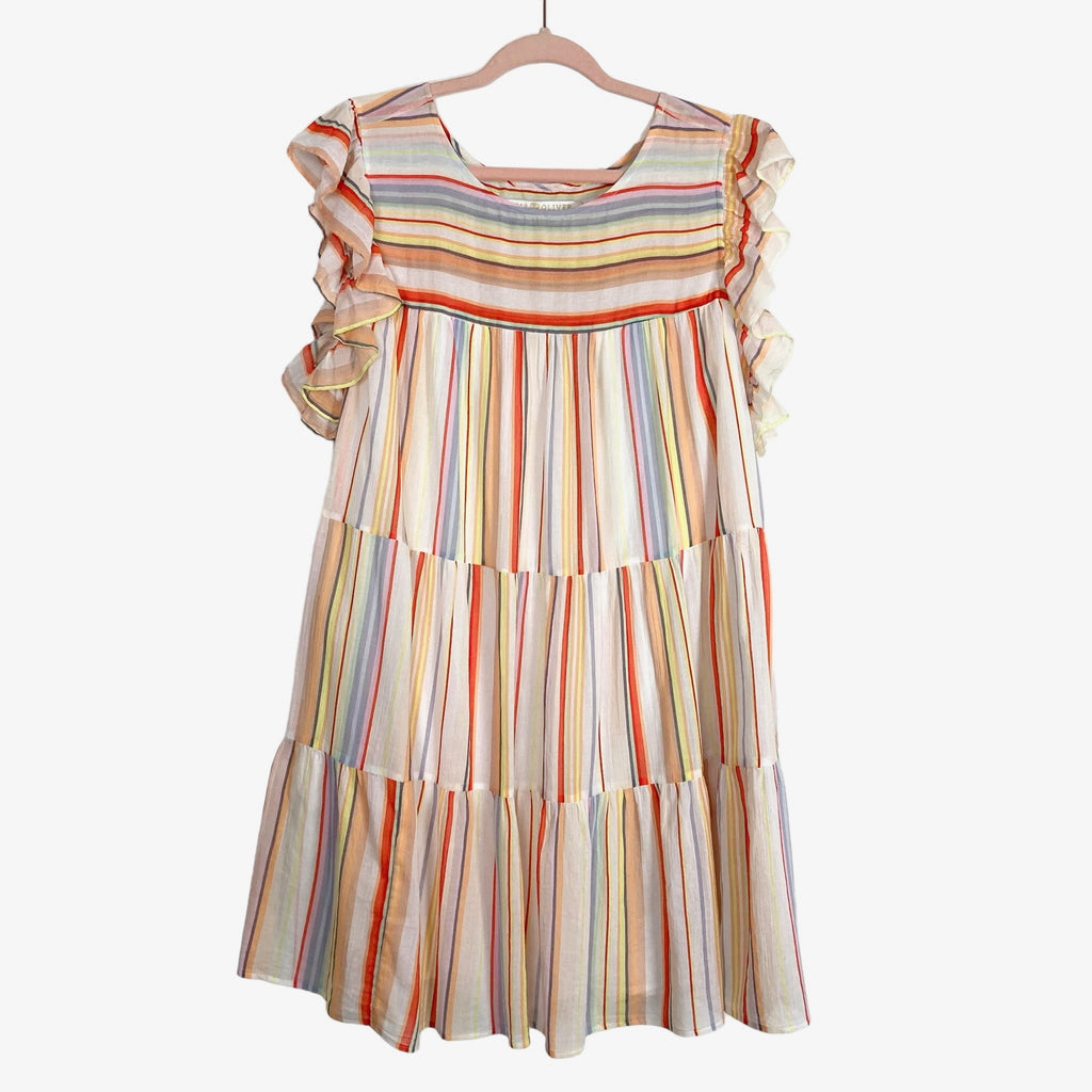 Marie Oliver Colorful Striped Ruffle Sleeve Lined Dress- Size XL