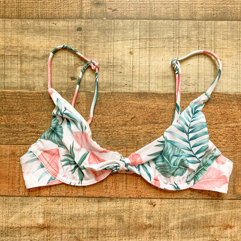 MinkPink Green/Pink Palm Print Bikini Top- Size S