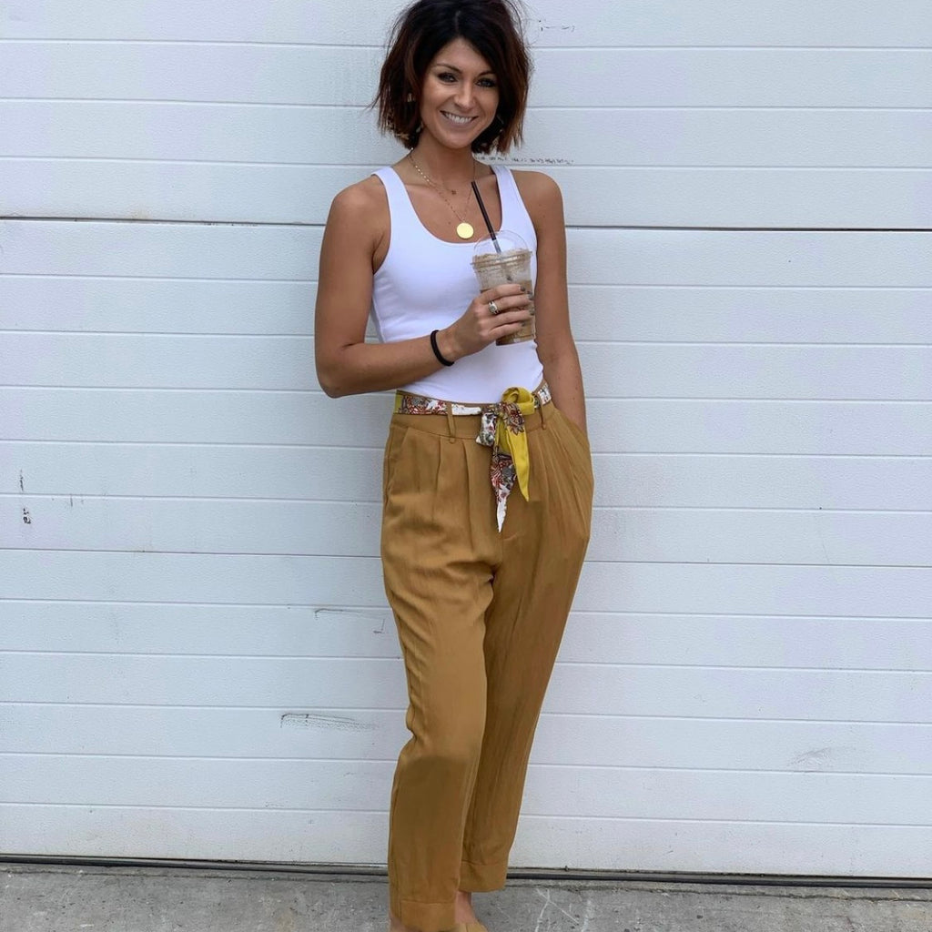 Mystree Brown Pants with Printed Belt NWT- Size S (Inseam 25.5”)