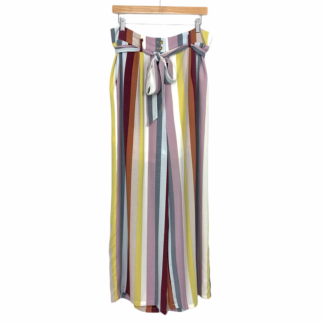 Mystree Striped High Waisted Belted Pants NWT- Size L (Inseam 27.5”)