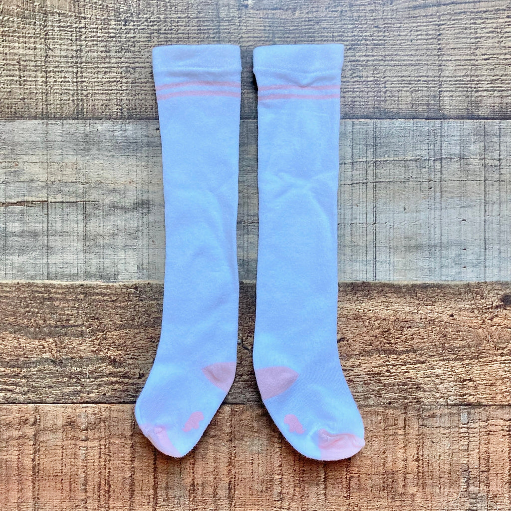 No Brand White with Pink Stripes Over the Knee Socks- Size ~12-18M (see notes)