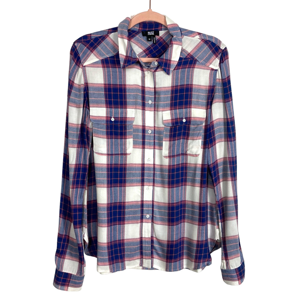Paige Navy/Pink/White Plaid Button Up- Size M (see notes)