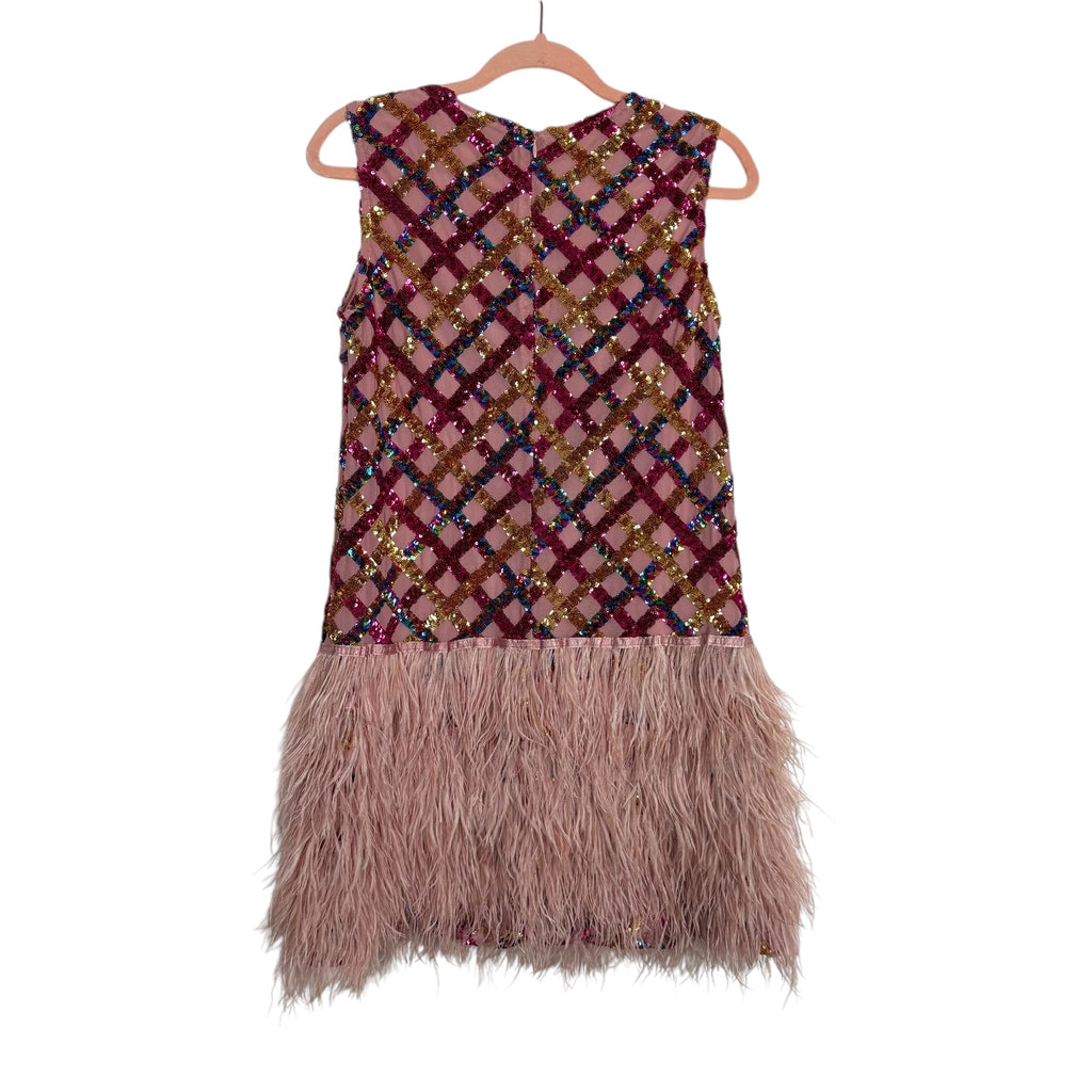 Queen Of Sparkles Light Pink Diamond Feather Dress - Size XS