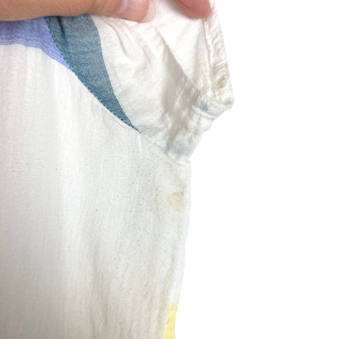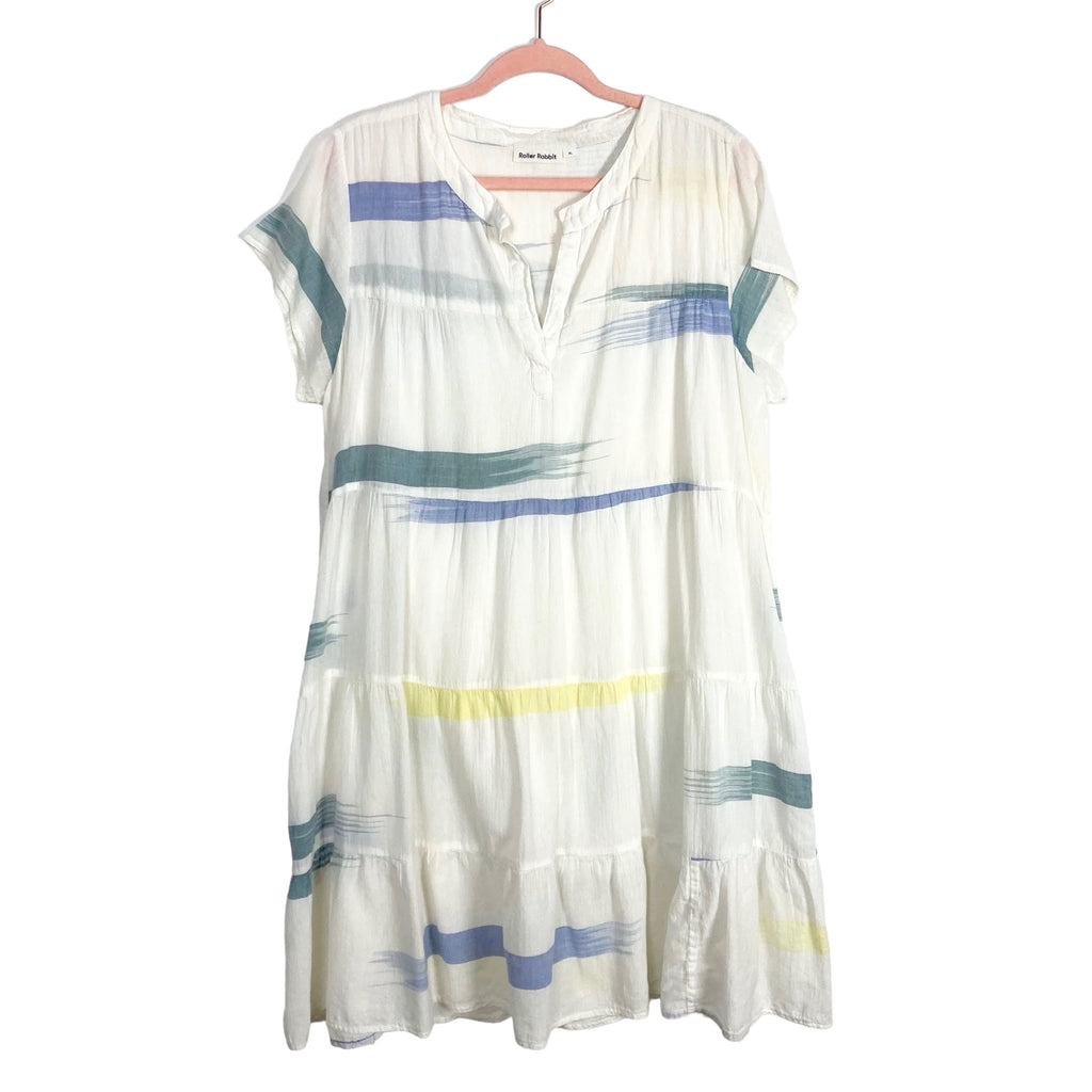 Roller Rabbit White/Blue/Yellow Paintbrush Strokes Notched Neckline Tiered Dress- Size XL (see notes)