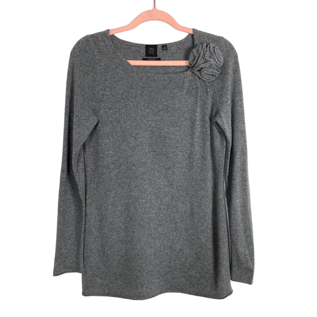 Saks Fifth Avenue Gray 100% Cashmere with Rosette Sweater- Size M