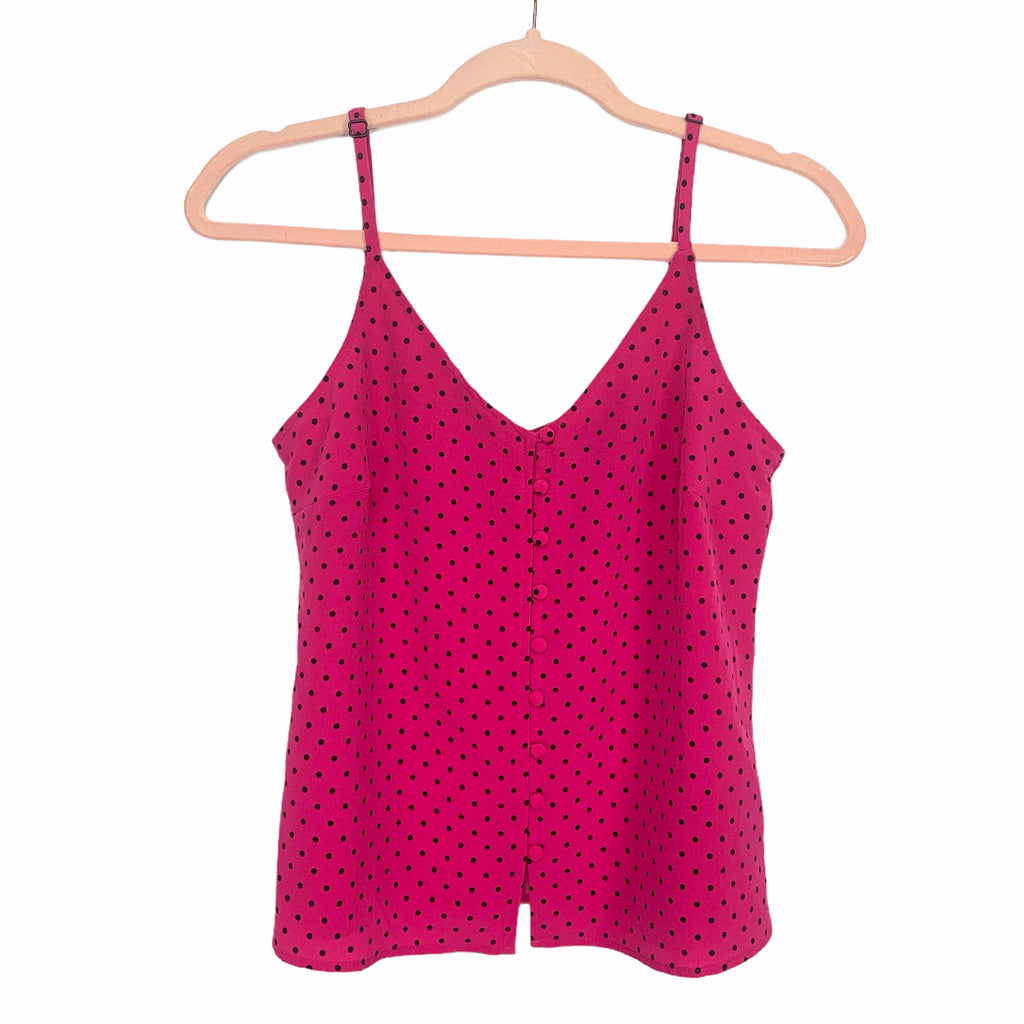 Sanctuary Hot Pink/ Black Polka Dot Button Up Tank Top NWT- Size L
