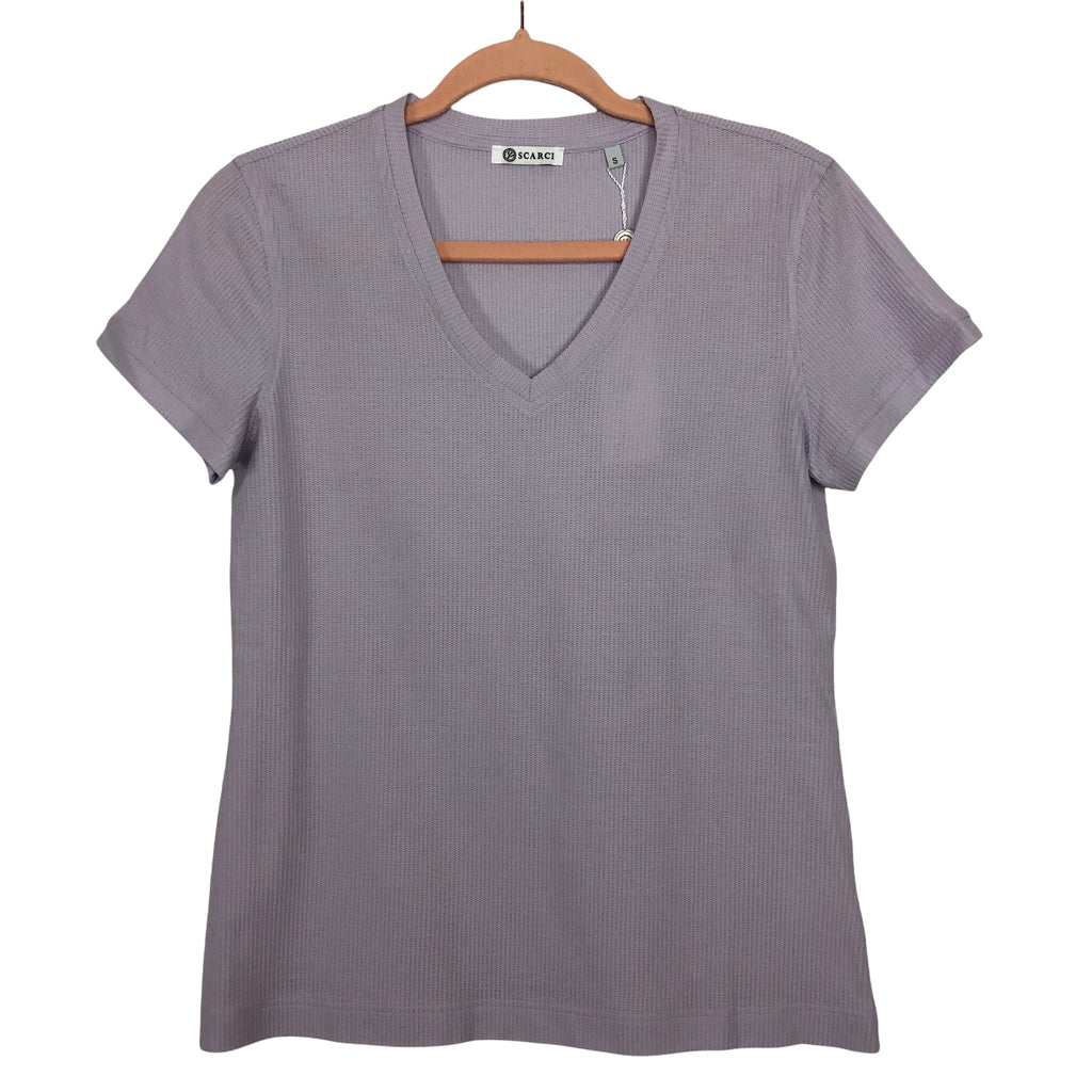 SCARCI Lavender Italian Stretch Cotton Waffle Texture V-Neck Tee NWT- Size S