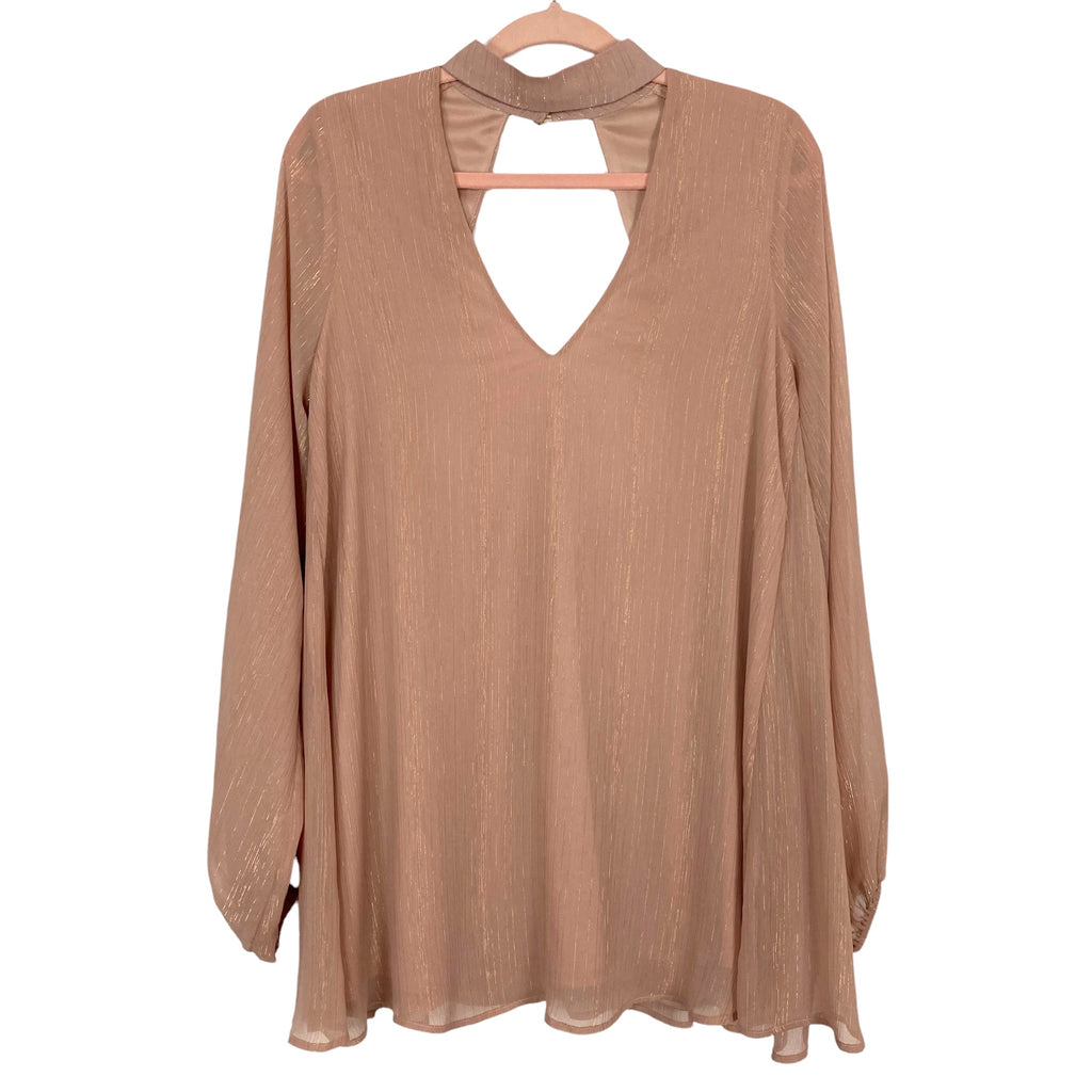 Show Me Your Mumu Pink/Gold Metallic Striped Halter Exposed Back Dress- Size S