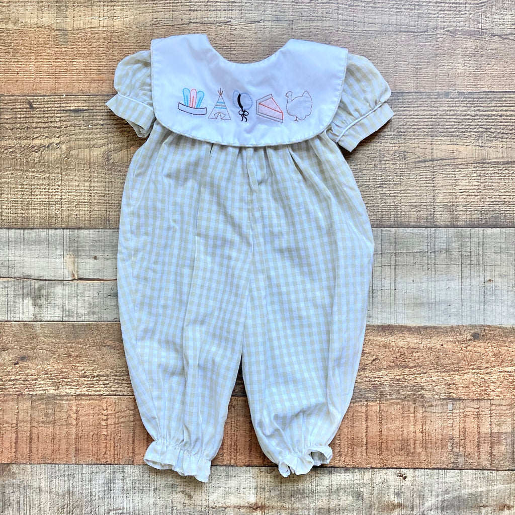 Smocked by Stellybelly Thanksgiving Embroidered Jumpsuit- Size 3M