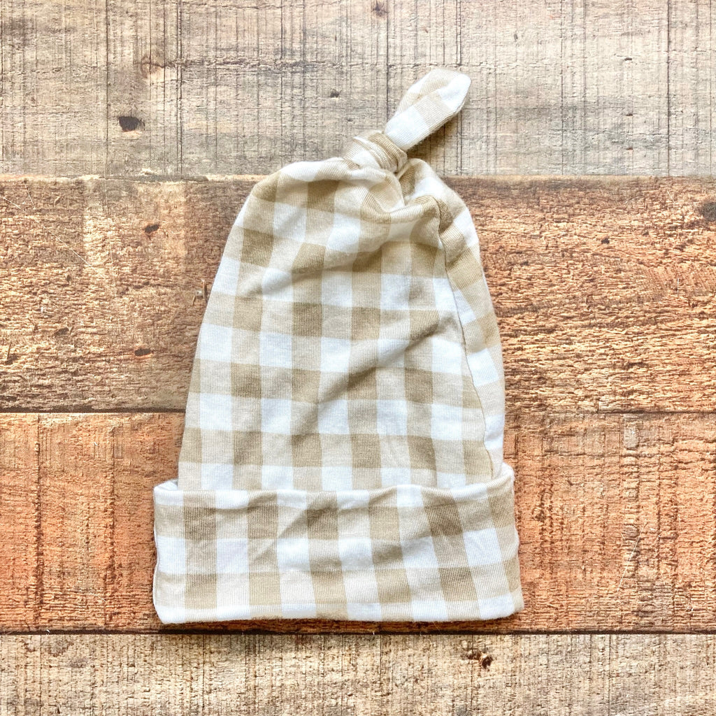 Solly Baby Tan Gingham Knotted Baby Hat- Size ~0-6M (see notes)