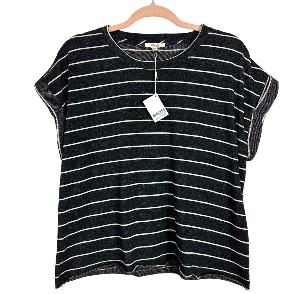 Splendid Eco Charcoal Black/Cream Striped French Terry Short Sleeve Sweatshirt NWT- Size L (sold out online)