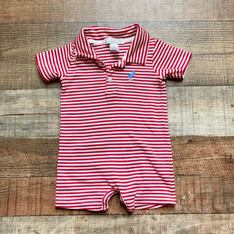The Beaufort Bonnet Company Red/White Striped Romper- Size 3-6M
