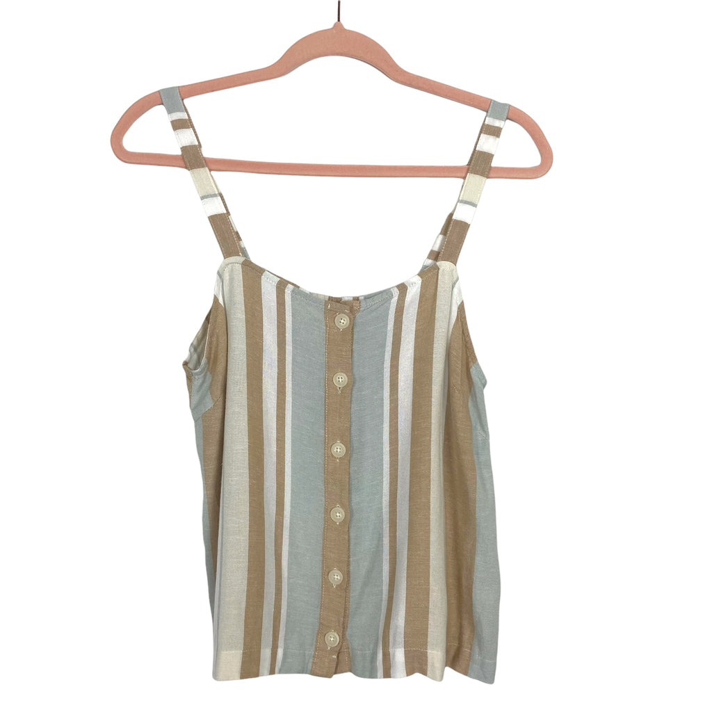 Thread & Supply Tan/White/Blue Striped Button Front Tank NWT- Size S