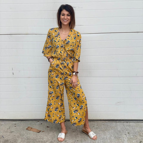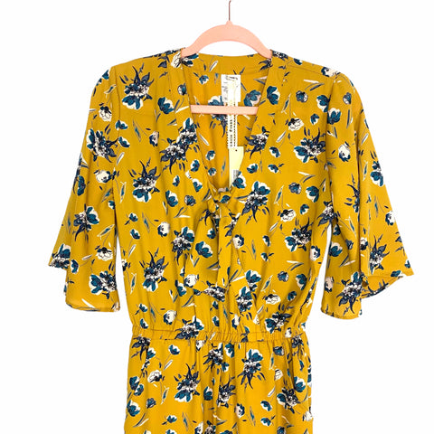 Uncle Frank Mustard Floral Elastic Waist Side Slit Hem Jumpsuit NWT- Size M