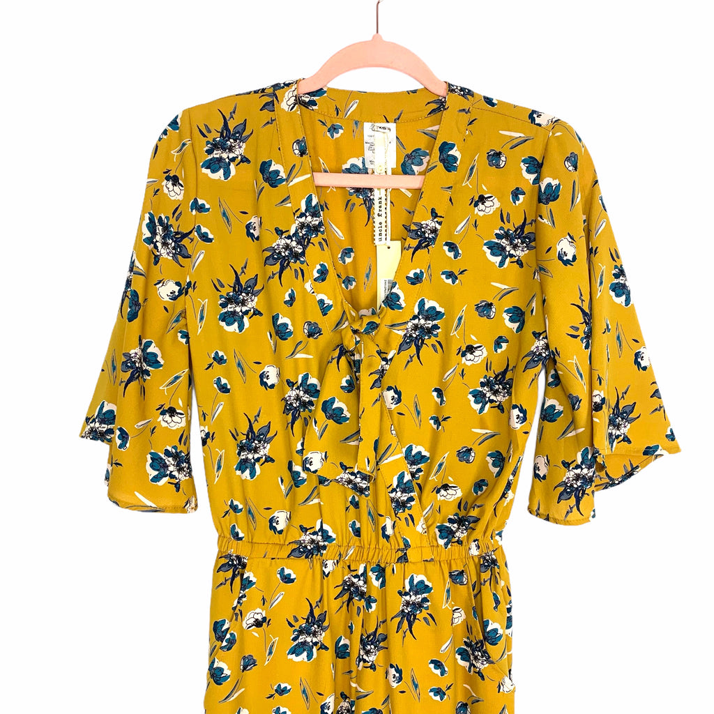 Uncle Frank Mustard Floral Elastic Waist Side Slit Hem Jumpsuit NWT- Size XS