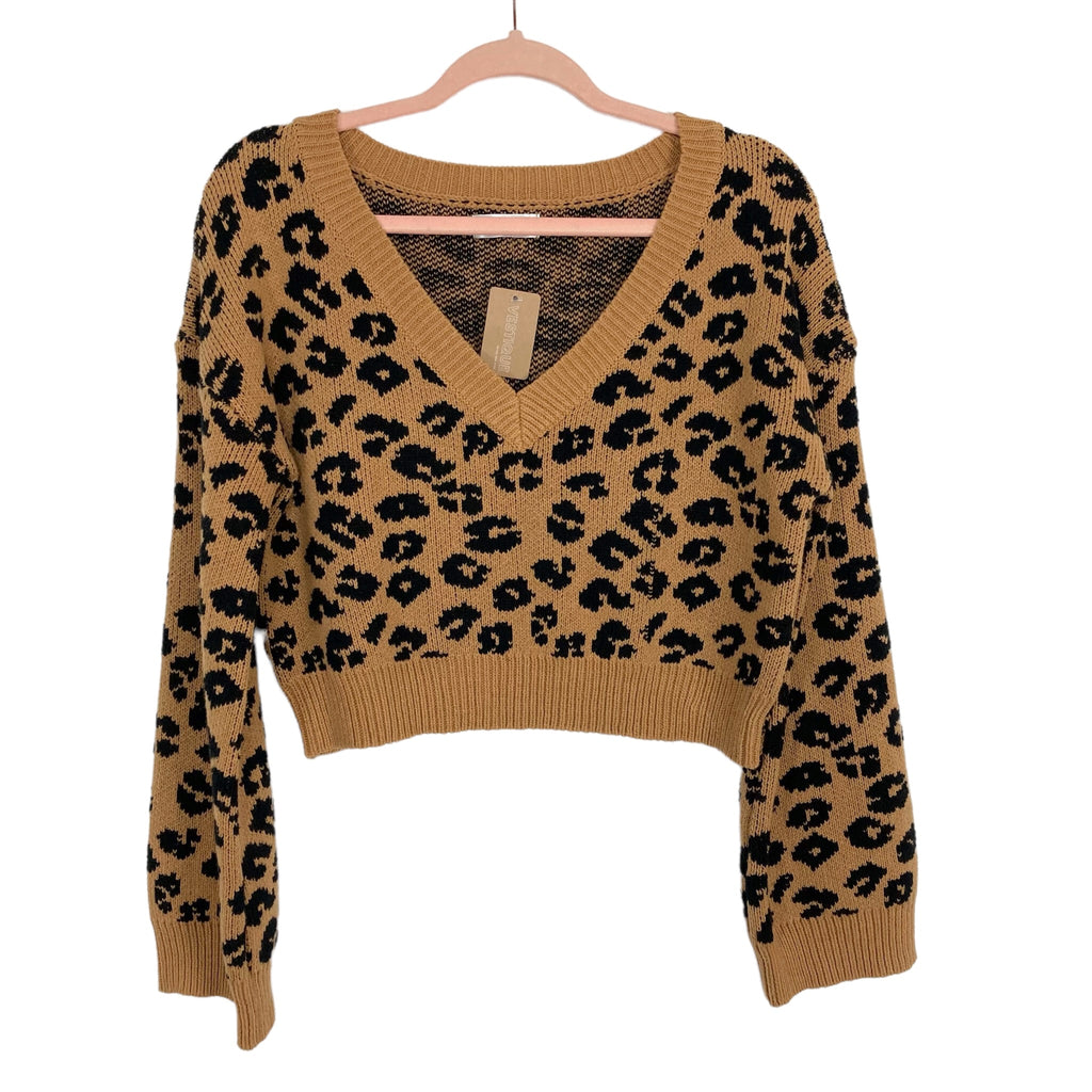 Vestique Caramel/Black V-Neck Cropped Sweater NWT- Size S
