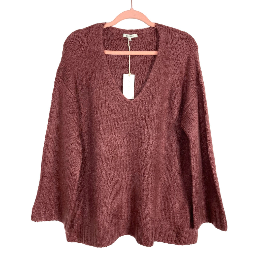 Z Supply Chocolate Brown V-Neck with Wide Sleeves Tunic Sweater NWT- Size L