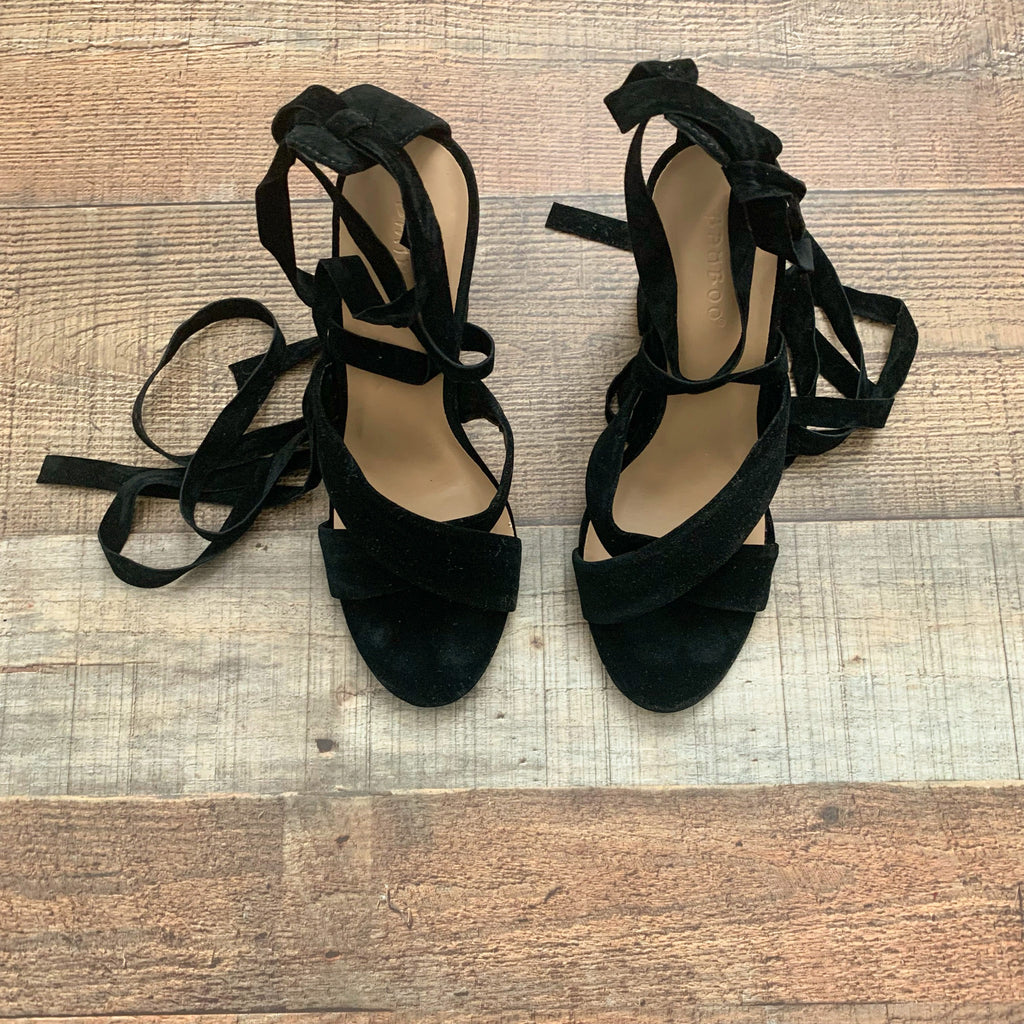 Bamboo Black Velvet Encounter Ankle Wrap Shoes- Size 7 (Like New Condition!)
